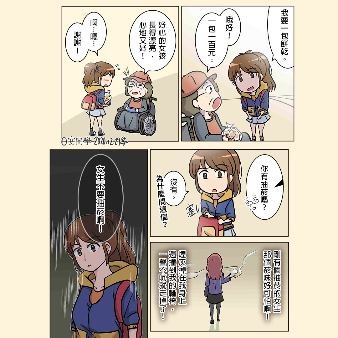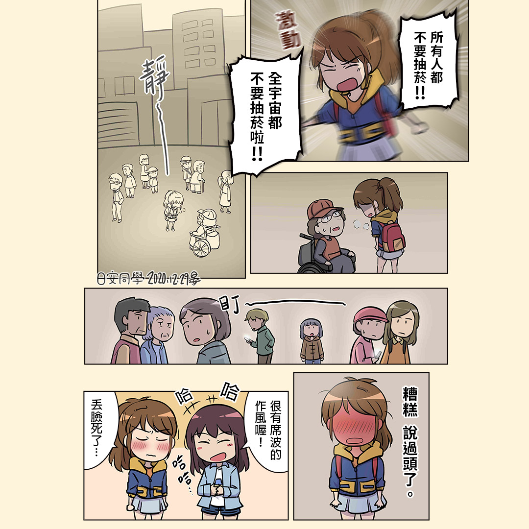 【日安同學漫畫】抽菸地雷2022 年 10 月 30 日日安同學系列 【日安同學漫畫】抽菸地雷 這次練習即興創造各種路人,燒腦但有趣。 【角色故事】席波Seepo 席波這個角色源自我學生時期的一個朋友,她是一個極具正義感、膽大心細又擅長運動的女生,令我非常憧憬。另外…特別討厭菸味。 2020 / 12 / 29 by日安同學 我是日安同學,喜歡我的漫畫歡迎點讚或留言喔,你的支持是我創作的動力! 謝謝你的觀賞,下次見。 標籤# 原創# 可愛# 台灣# 席波# 性別# 抽菸# 搞笑# 日安同學# 日安同學系列# 日常# 有趣# 溫馨# 漫畫# 生活# 社會# 諷刺 上一 文章 電影【坂道上的阿波羅】影評、台詞:人氣暢銷日本同名漫畫,電影真人神還原 Kids on the slope 下一 文章 【韓劇】《社內相親》漫畫版《我和社長相親相愛》和天菜談浪漫愛情!A Business Proposal