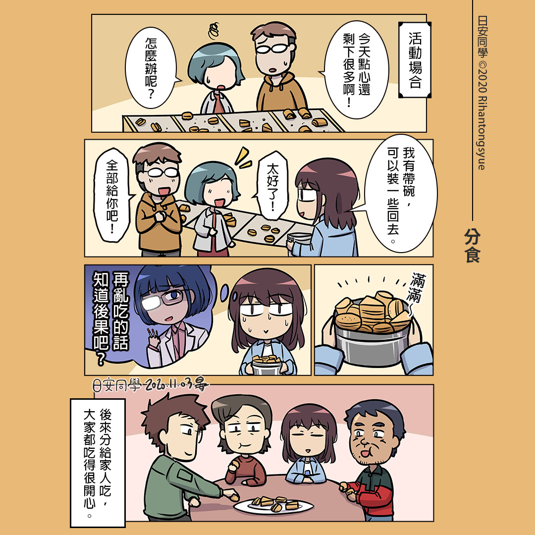 【日安同學漫畫】分食2022 年 6 月 28 日日安同學系列 【日安同學漫畫】分食 所謂急中生智(?) 自備碗可以將吃不完的剩食無痕帶回,真的很棒喔!(推坑中 2020 / 11 / 03 by日安同學 / 我是日安同學,喜歡我的漫畫歡迎點讚或留言喔,你的支持是我創作的動力! 謝謝你的觀賞,下次見。 標籤# Q版# 原創# 可愛# 台灣# 圖文# 惜食# 搞笑# 日安同學# 日安同學系列# 日常# 漫畫# 環保# 生活# 醫生# 黎朵 上一 文章 電影【朵貝的愛情繪本】暢銷全球嚕嚕米作者傳記電影:導演、演員、預告片 Tove 下一 文章 【食記】31冰淇淋2022年菜單,選一個最愛的口味!全省門市資訊