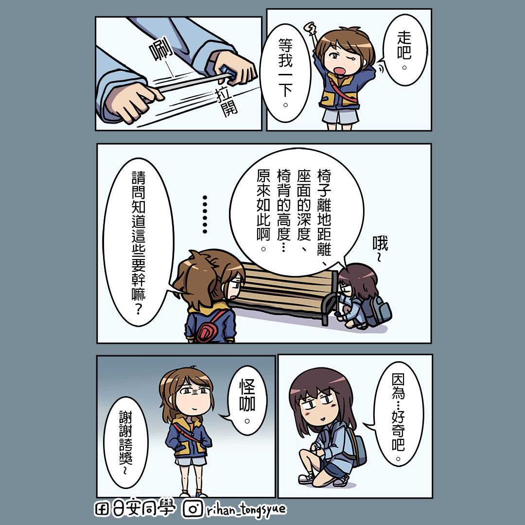 【日安同學漫畫】好奇2021 年 3 月 22 日圖文漫畫日安同學系列 【日安同學漫畫】好奇 捲尺的故事。大學時有一門課是環境視覺設計,讓我開始對公共設計產生興趣,從那之後就開始帶捲尺了,我用的是軟尺皮,所以很輕便,養成觀察習慣的同時,也很神奇地對畫畫有所幫助。 #怪是稱讚 by 日安同學 【日安同學的背包】 第1話 環保碗 第2話 負重的烏龜 第3話 辛苦 第4話 果然還是 第5話 兩個水瓶 第6話 用不到 ●第7話 好奇 第8話 抓蟲罐的使用方法 第9話 萌芽 (系列完結) 我是日安同學,喜歡我的漫畫歡迎點讚或留言喔,你的支持是我創作的動力! 謝謝你的觀賞,下次見。 標籤# Q版# 原創# 可愛# 台灣# 圖文# 搞笑# 日安同學# 日安同學的背包# 日安同學系列# 日常# 漫畫# 生活 上一 文章 【開箱】日本Sailor寫樂 世界第一支21K尖鋼筆 1969年古董筆短鋼 Sailor 21K Mini 下一 文章 【食記】台北信義101大樓景觀餐廳 36F 隨意吧:白天也來開喝吧~101辦公大樓隨意商務酒吧!隨意鳥地方集團